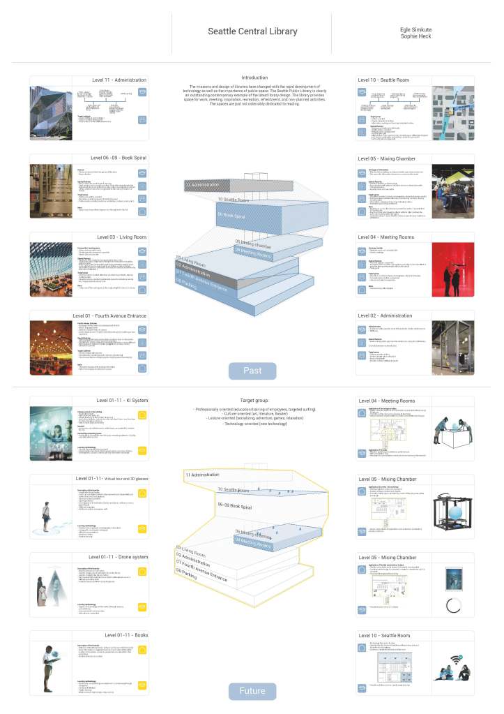 The Seattle Public Library is an outstanding example of today’s library design. The library provides space for work, meeting, inspiration, recreation, refreshment, and non-planned activities. The spaces are not ostensibly dedicated to reading.